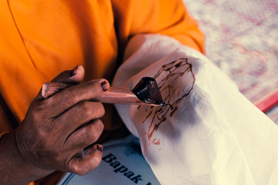 Les habitants de Pasar Rawa se tournent à présent vers la préservation des mangroves qui entourent le village, et intègrent leurs ressources naturelles au cœur de leur quotidien. Accompagnés par Yagasu qui fournit le matériel et prodigue les formations, des groupements de femmes s’initient à la production de batik, une encre issue des branches de palétuviers pour teindre les étoffes traditionnelles locales. Sous le pavillon en bois situé au bord de la rivière, nous rencontrons Hamidah, formatrice pour la production de batik dans la région de Pasar Gebang. Penchée au-dessus d’une cuve en étain dans laquelle mijote l’encre sombre, elle prend le temps de nous expliquer son processus de création. « Nous récoltons des branches mortes de palétuviers au sein de la mangrove, puis nous les étuvons avec de l’eau bouillante jusqu’à ce qu’un liquide coloré en dégorge. C’est cette encre, bleue ou brune selon l’essence de l’arbre, que nous utilisons ensuite pour colorer les motifs que nous avons d’abord dessinés et fixés à la cire sur des tissus. Puis il faut verrouiller la couleur grâce à un mécanisme de fixation, afin que la teinture au batik ne s’estompe pas avec le temps. » A Pasar Rawa et dans plusieurs villages environnants, une véritable filière économique se développe à présent autour du batik, comme en témoigne encore Hamidah, fière que les tissus soient vendus aux clients de passage.